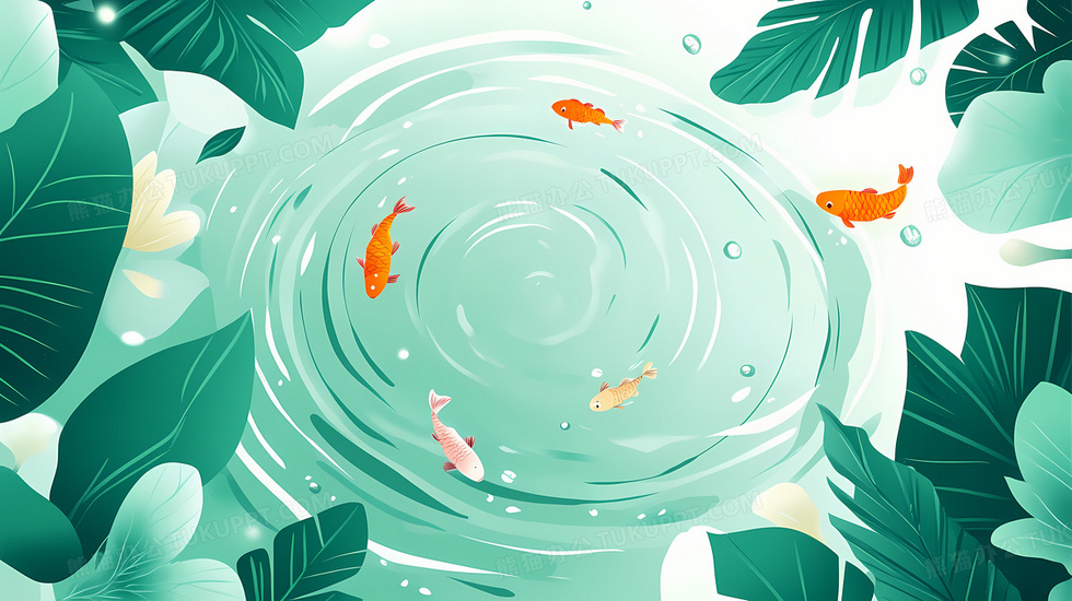 本作品内容为河中小鱼和绿叶风景插画, 格式为 jpg, 大小3 MB, 图片尺寸为2912 x 1632, 源文件无水印, 欢迎使用熊猫办公。 如认为平台内容涉嫌侵权,可通过邮件:tousu@tukuppt.com提出书面通知,我们将及时处理。