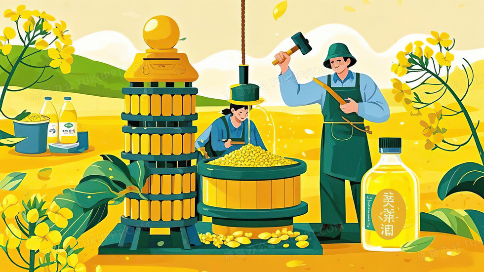 本作品内容为榨油粮油农村生活农产品插画, 格式为 jpg, 大小4 MB, 图片尺寸为3072 x 1728, 源文件无水印, 欢迎使用熊猫办公。 如认为平台内容涉嫌侵权,可通过邮件:tousu@tukuppt.com提出书面通知,我们将及时处理。