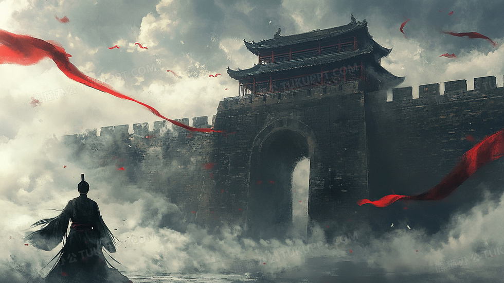 本作品内容为中国风山水武侠侠士城门插画, 格式为 jpg, 大小4 MB, 图片尺寸为2912 x 1632, 源文件无水印, 欢迎使用熊猫办公。 如认为平台内容涉嫌侵权,可通过邮件:tousu@tukuppt.com提出书面通知,我们将及时处理。