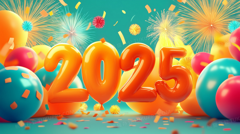 本作品内容为2025气球数字组合的创意插画, 格式为 jpg, 大小7 MB, 图片尺寸为2912 x 1632, 源文件无水印, 欢迎使用熊猫办公。 如认为平台内容涉嫌侵权,可通过邮件:tousu@tukuppt.com提出书面通知,我们将及时处理。
