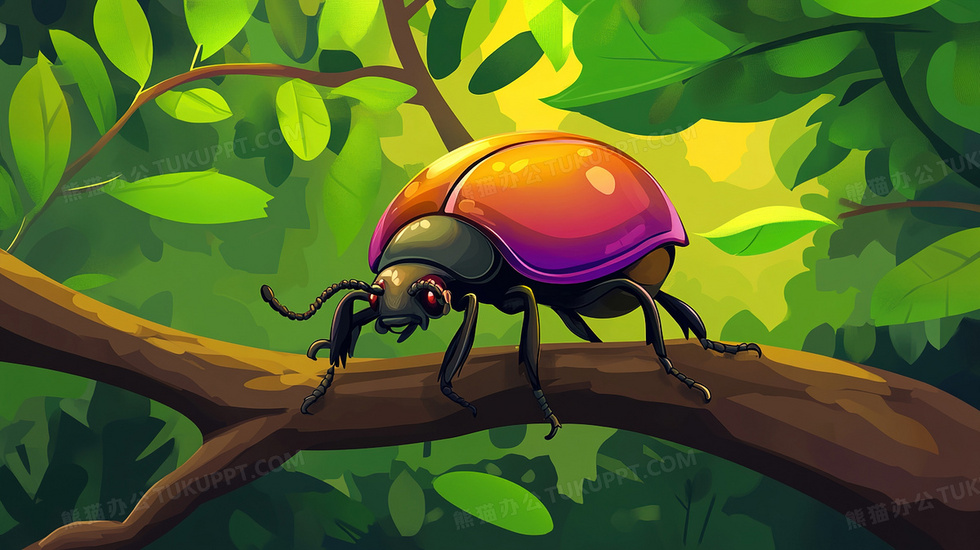 本作品内容为户外自然界树上的甲虫插画, 格式为 jpg, 大小3 MB, 图片尺寸为2912 x 1632, 源文件无水印, 欢迎使用熊猫办公。 如认为平台内容涉嫌侵权,可通过邮件:tousu@tukuppt.com提出书面通知,我们将及时处理。