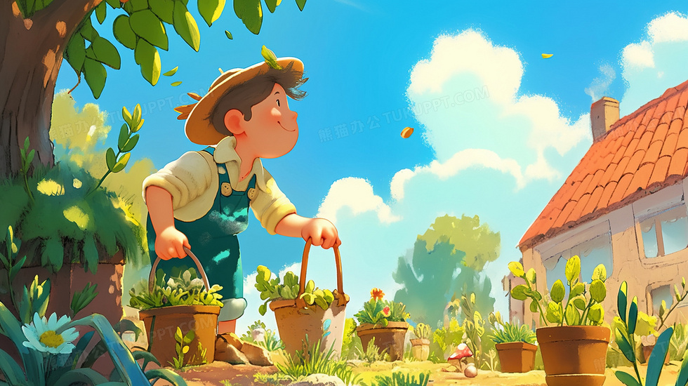 本作品内容为青年园艺师在花园种花卡通插画, 格式为 jpg, 大小3 MB, 图片尺寸为2912 x 1632, 源文件无水印, 欢迎使用熊猫办公。 如认为平台内容涉嫌侵权,可通过邮件:tousu@tukuppt.com提出书面通知,我们将及时处理。