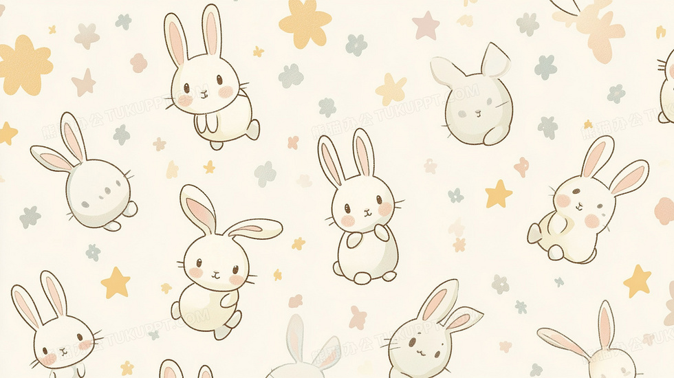 本作品内容为小兔子平铺印花背景, 格式为 jpg, 大小2 MB, 图片尺寸为2912 x 1632, 作品中背景图片无需修改, 源文件无水印,可以直接使用, 欢迎使用熊猫办公。 如认为平台内容涉嫌侵权,可通过邮件:tousu@tukuppt.com提出书面通知,我们将及时处理。