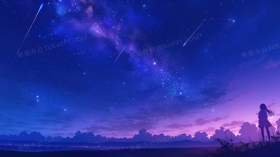 本作品内容为蓝色流星星空夜色背景, 格式为 jpg, 大小3 MB, 图片尺寸为2912 x 1632, 作品中背景图片无需修改, 源文件无水印,可以直接使用, 欢迎使用熊猫办公。 如认为平台内容涉嫌侵权,可通过邮件:tousu@tukuppt.com提出书面通知,我们将及时处理。
