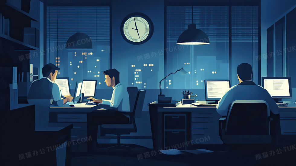 本作品内容为扁平风深夜加班的打工人插画, 格式为 jpg, 大小4 MB, 图片尺寸为2912 x 1632, 源文件无水印, 欢迎使用熊猫办公。 如认为平台内容涉嫌侵权,可通过邮件:tousu@tukuppt.com提出书面通知,我们将及时处理。