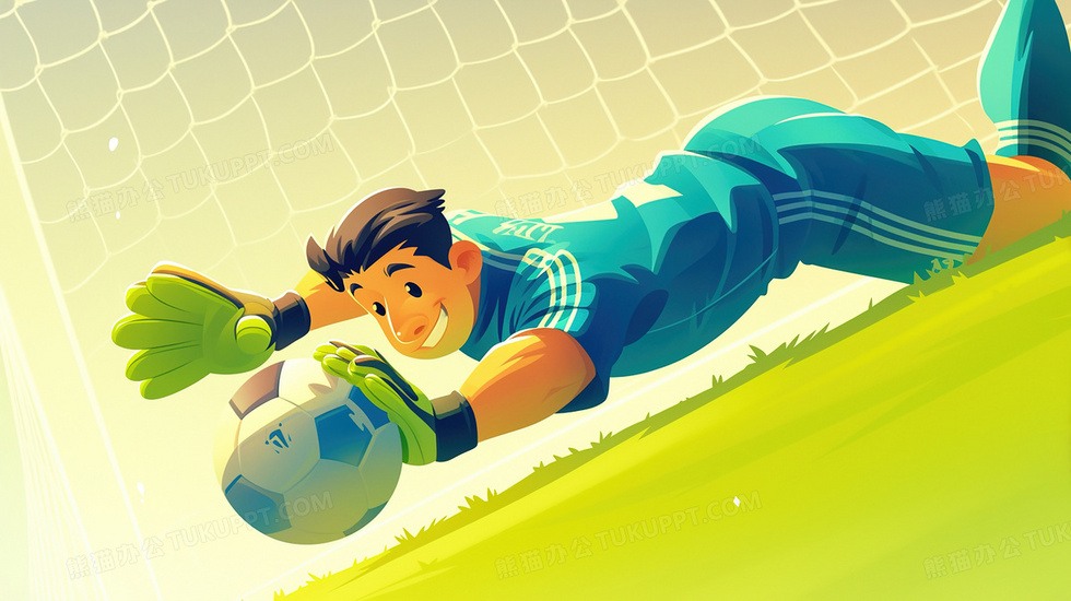 本作品内容为足球运动守门员插画, 格式为 jpg, 大小2 MB, 图片尺寸为2912 x 1632, 源文件无水印, 欢迎使用熊猫办公。 如认为平台内容涉嫌侵权,可通过邮件:tousu@tukuppt.com提出书面通知,我们将及时处理。