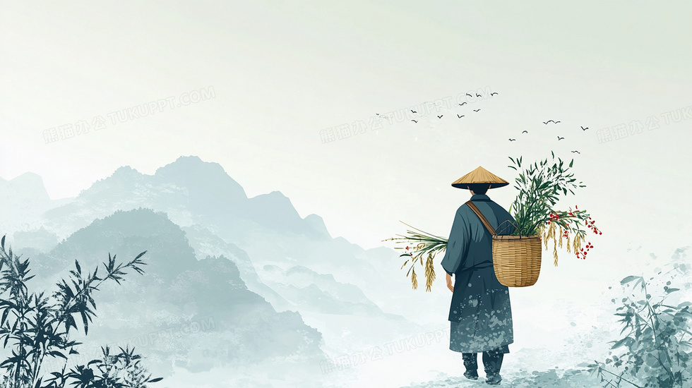 本作品内容为中国风水墨中医采药背景, 格式为 jpg, 大小2 MB, 图片尺寸为2912 x 1632, 作品中背景图片无需修改, 源文件无水印,可以直接使用, 欢迎使用熊猫办公。 如认为平台内容涉嫌侵权,可通过邮件:tousu@tukuppt.com提出书面通知,我们将及时处理。