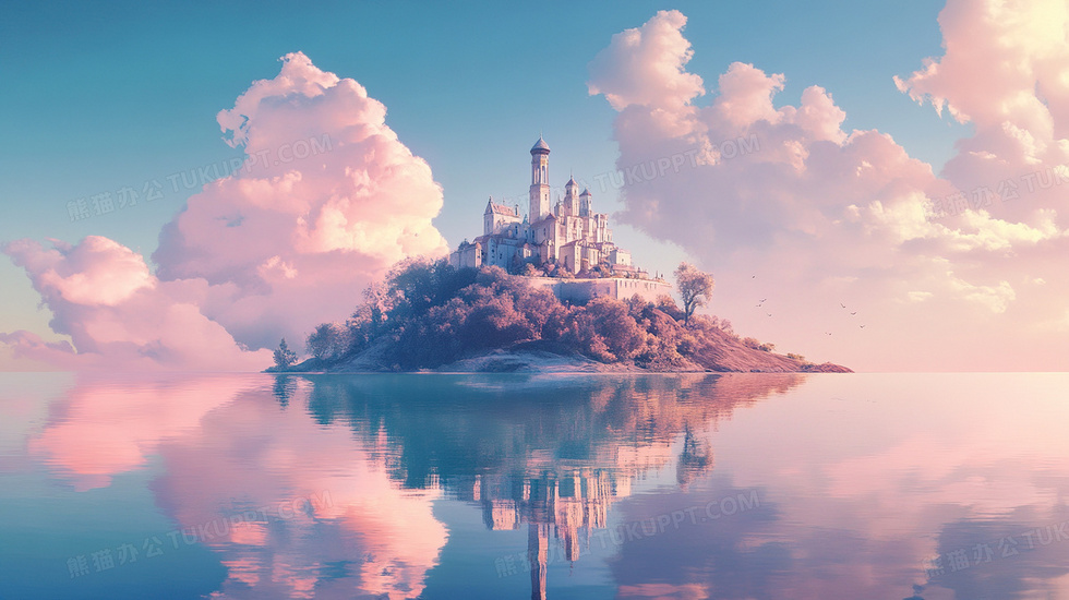 本作品内容为海岛城堡唯美壁纸风景插画, 格式为 jpg, 大小3 MB, 图片尺寸为2912 x 1632, 源文件无水印, 欢迎使用熊猫办公。 如认为平台内容涉嫌侵权,可通过邮件:tousu@tukuppt.com提出书面通知,我们将及时处理。
