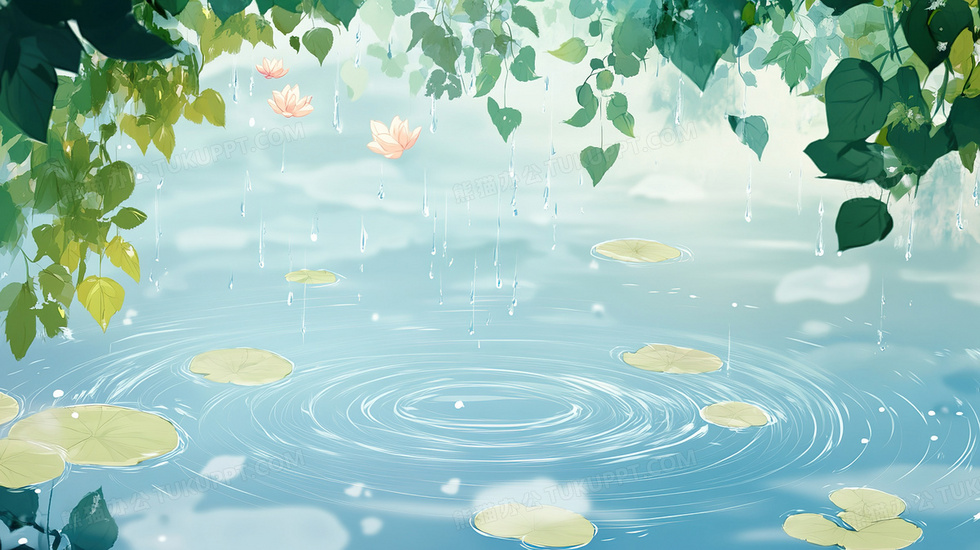 本作品内容为下雨天雨水滴落荷塘水波纹植物插画, 格式为 jpg, 大小3 MB, 图片尺寸为2912 x 1632, 源文件无水印, 欢迎使用熊猫办公。 如认为平台内容涉嫌侵权,可通过邮件:tousu@tukuppt.com提出书面通知,我们将及时处理。