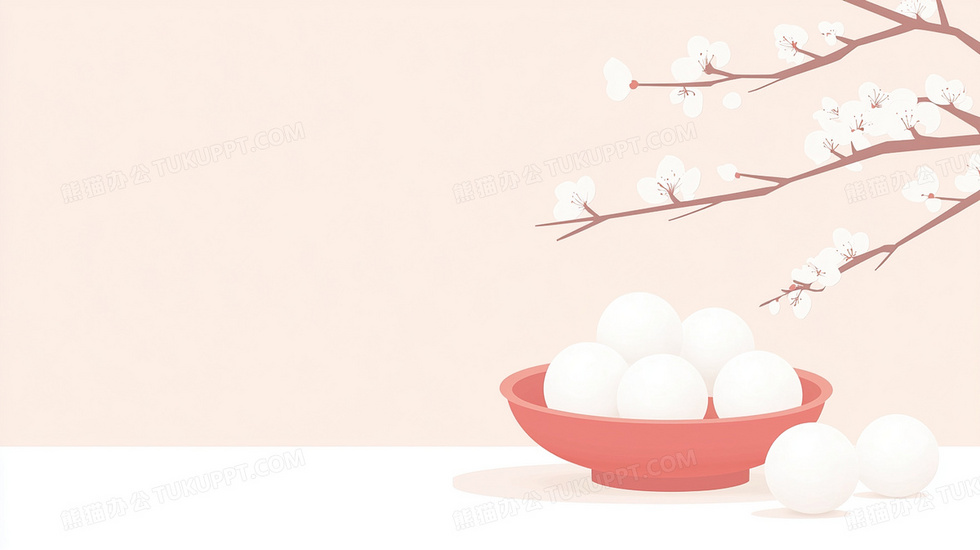 本作品内容为植物花枝美食元宵汤圆红色背景, 格式为 jpg, 大小1 MB, 图片尺寸为2912 x 1632, 作品中背景图片无需修改, 源文件无水印,可以直接使用, 欢迎使用熊猫办公。 如认为平台内容涉嫌侵权,可通过邮件:tousu@tukuppt.com提出书面通知,我们将及时处理。