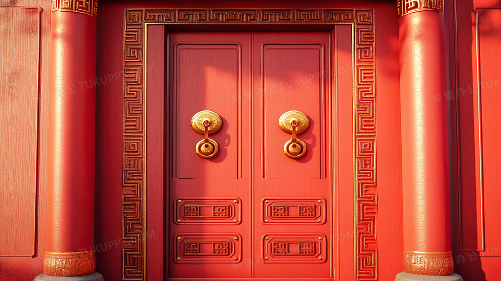 本作品内容为铜环红门喜庆中国风大门建筑背景, 格式为 jpg, 大小4 MB, 图片尺寸为2912 x 1632, 作品中背景图片无需修改, 源文件无水印,可以直接使用, 欢迎使用熊猫办公。 如认为平台内容涉嫌侵权,可通过邮件:tousu@tukuppt.com提出书面通知,我们将及时处理。