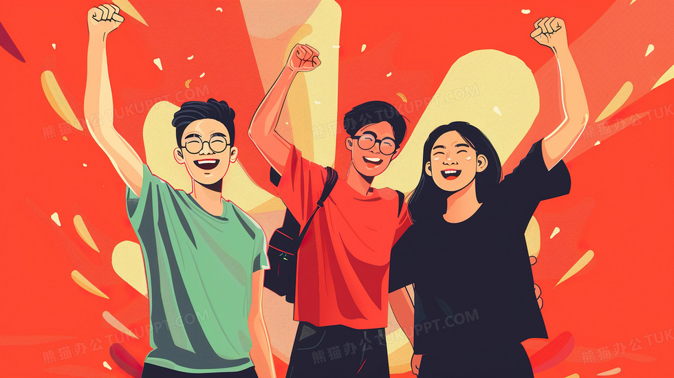 本作品内容为欢呼呐喊励志积极阳光正能量插画, 格式为 jpg, 大小3 MB, 图片尺寸为2912 x 1632, 源文件无水印, 欢迎使用熊猫办公。 如认为平台内容涉嫌侵权,可通过邮件:tousu@tukuppt.com提出书面通知,我们将及时处理。
