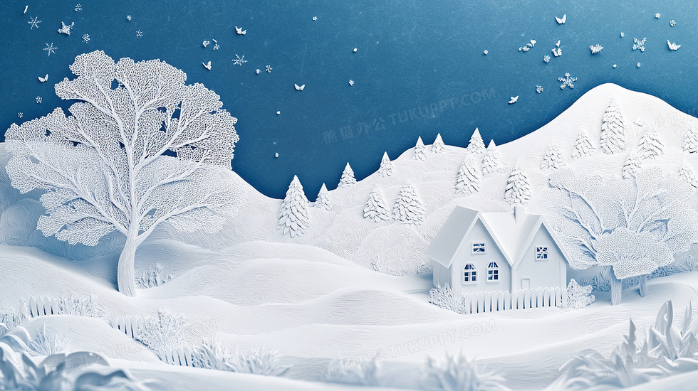 本作品内容为冬天雪景自然风景剪纸贴纸立体插画, 格式为 jpg, 大小4 MB, 图片尺寸为2912 x 1632, 源文件无水印, 欢迎使用熊猫办公。 如认为平台内容涉嫌侵权,可通过邮件:tousu@tukuppt.com提出书面通知,我们将及时处理。