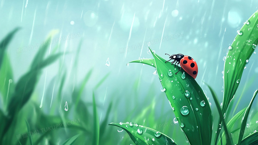 本作品内容为树叶甲虫春天下雨风景插画, 格式为 jpg, 大小3 MB, 图片尺寸为2912 x 1632, 源文件无水印, 欢迎使用熊猫办公。 如认为平台内容涉嫌侵权,可通过邮件:tousu@tukuppt.com提出书面通知,我们将及时处理。