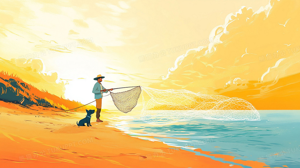 本作品内容为卡通渔民海边撒网背景, 格式为 jpg, 大小1 MB, 图片尺寸为2912 x 1632, 作品中背景图片无需修改, 源文件无水印,可以直接使用, 欢迎使用熊猫办公。 如认为平台内容涉嫌侵权,可通过邮件:tousu@tukuppt.com提出书面通知,我们将及时处理。