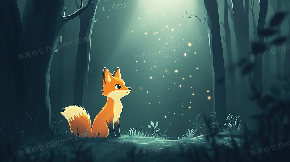 本作品内容为森林里的狐狸夜景背景, 格式为 jpg, 大小2 MB, 图片尺寸为2912 x 1632, 作品中背景图片无需修改, 源文件无水印,可以直接使用, 欢迎使用熊猫办公。 如认为平台内容涉嫌侵权,可通过邮件:tousu@tukuppt.com提出书面通知,我们将及时处理。
