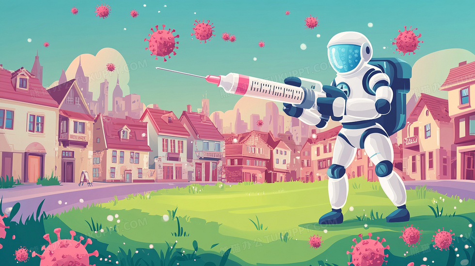 本作品内容为机器人拿消毒针管清除流感病毒卡通插画, 格式为 jpg, 大小3 MB, 图片尺寸为2912 x 1632, 源文件无水印, 欢迎使用熊猫办公。 如认为平台内容涉嫌侵权,可通过邮件:tousu@tukuppt.com提出书面通知,我们将及时处理。