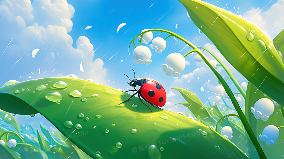 本作品内容为春天大自然绿叶上的虫子七星瓢虫插画, 格式为 jpg, 大小3 MB, 图片尺寸为2912 x 1632, 源文件无水印, 欢迎使用熊猫办公。 如认为平台内容涉嫌侵权,可通过邮件:tousu@tukuppt.com提出书面通知,我们将及时处理。