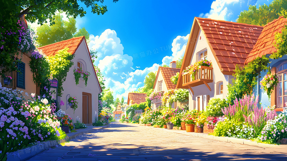 本作品内容为插画风格春天街区小巷阳台花蒲蓝天白云唯美场景, 格式为 jpg, 大小4 MB, 图片尺寸为2912 x 1632, 源文件无水印, 欢迎使用熊猫办公。 如认为平台内容涉嫌侵权,可通过邮件:tousu@tukuppt.com提出书面通知,我们将及时处理。