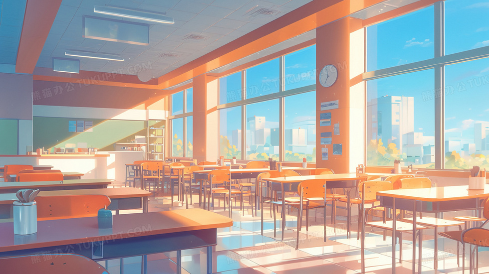 本作品内容为干净校园食堂场景插画, 格式为 jpg, 大小3 MB, 图片尺寸为2912 x 1632, 源文件无水印, 欢迎使用熊猫办公。 如认为平台内容涉嫌侵权,可通过邮件:tousu@tukuppt.com提出书面通知,我们将及时处理。