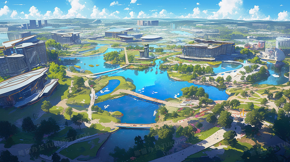 本作品内容为鸟瞰视角商务园区插画, 格式为 jpg, 大小4 MB, 图片尺寸为2912 x 1632, 源文件无水印, 欢迎使用熊猫办公。 如认为平台内容涉嫌侵权,可通过邮件:tousu@tukuppt.com提出书面通知,我们将及时处理。