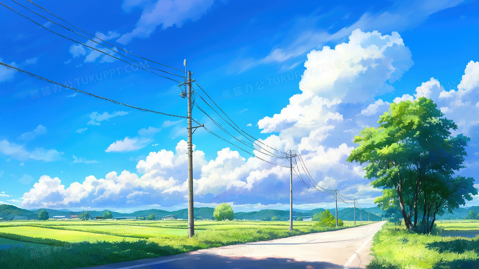 本作品内容为春天电线杆自然风景插画, 格式为 jpg, 大小3 MB, 图片尺寸为2912 x 1632, 源文件无水印, 欢迎使用熊猫办公。 如认为平台内容涉嫌侵权,可通过邮件:tousu@tukuppt.com提出书面通知,我们将及时处理。