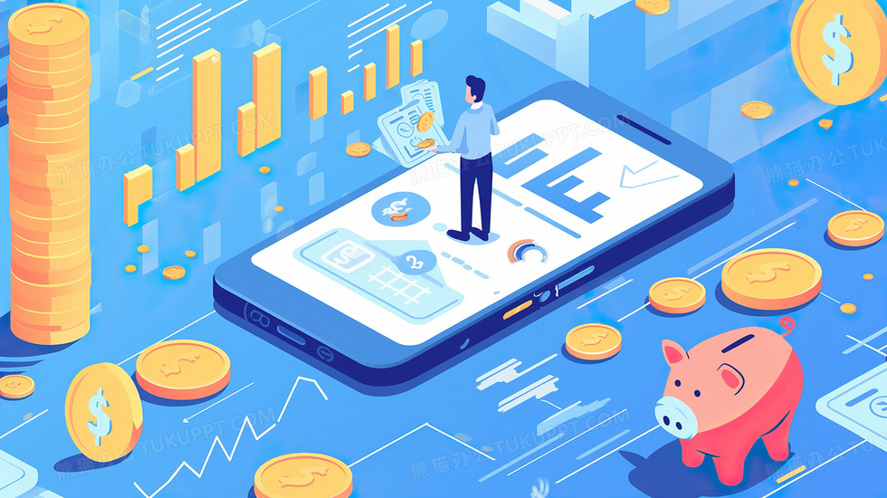 本作品内容为手机软件理财插画, 格式为 jpg, 大小3 MB, 图片尺寸为2912 x 1632, 源文件无水印, 欢迎使用熊猫办公。 如认为平台内容涉嫌侵权,可通过邮件:tousu@tukuppt.com提出书面通知,我们将及时处理。