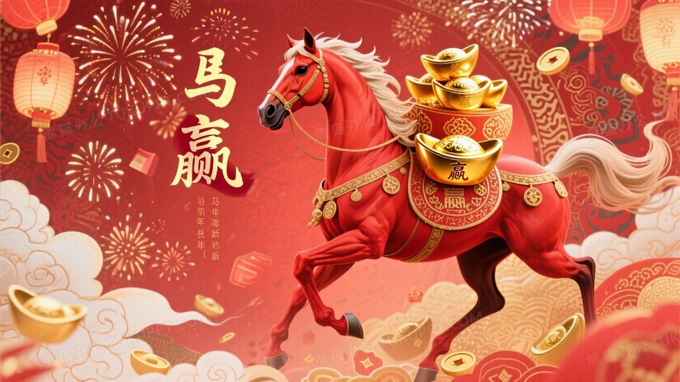 本作品内容为国潮风格马年新年海报, 格式为 jpg, 大小1 MB, 图片尺寸为1664 x 936, 作品中背景图片无需修改, 源文件无水印,可以直接使用, 欢迎使用熊猫办公。 如认为平台内容涉嫌侵权,可通过邮件:tousu@tukuppt.com提出书面通知,我们将及时处理。