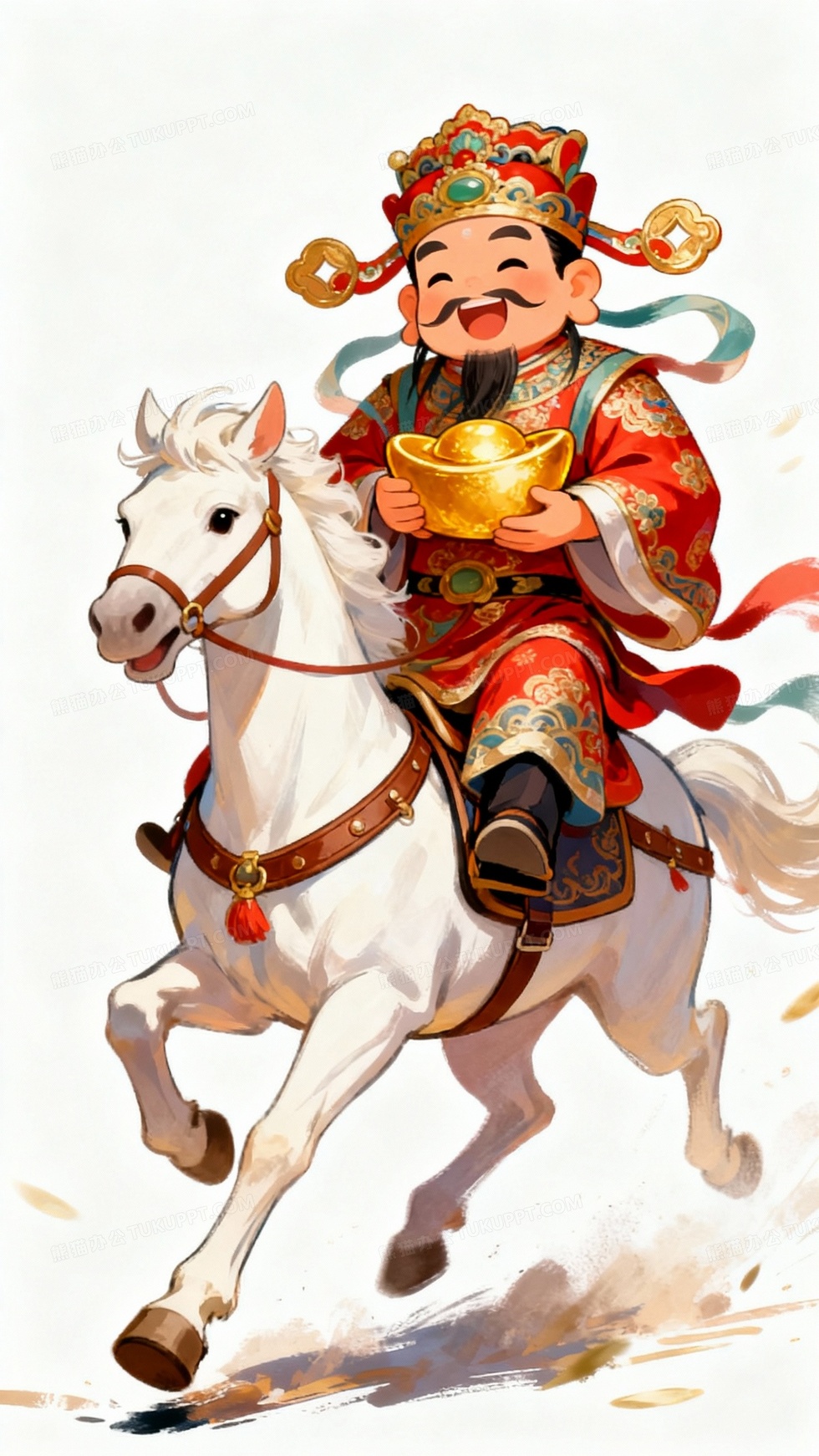 本作品内容为手绘风格插画白马背上坐着财神, 格式为 jpg, 大小1 MB, 图片尺寸为1440 x 2560, 源文件无水印, 欢迎使用熊猫办公。 如认为平台内容涉嫌侵权,可通过邮件:tousu@tukuppt.com提出书面通知,我们将及时处理。