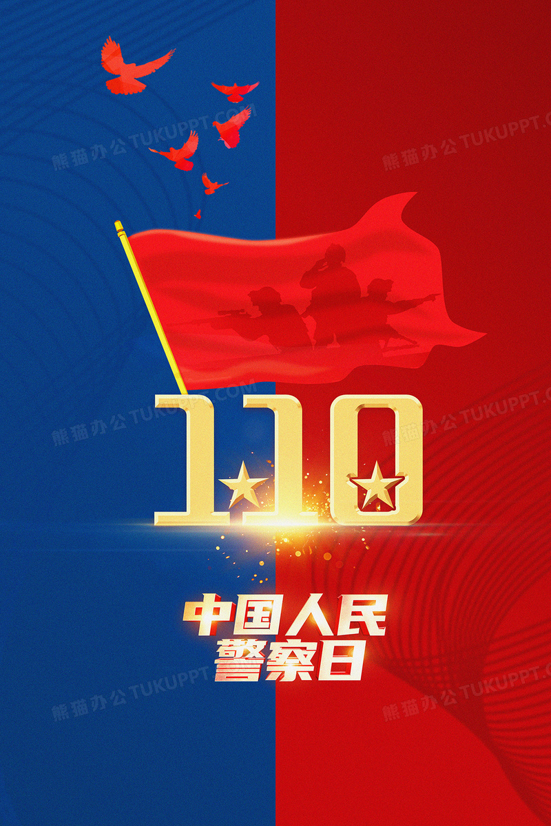 本作品内容为中国人民警察节红蓝撞色背景, 格式为 psd, 大小178 MB, 图片尺寸为1181 x 1771, 作品中背景图片无需修改, 源文件无水印,可以直接使用, 欢迎使用熊猫办公。 如认为平台内容涉嫌侵权,可通过邮件:tousu@tukuppt.com提出书面通知,我们将及时处理。