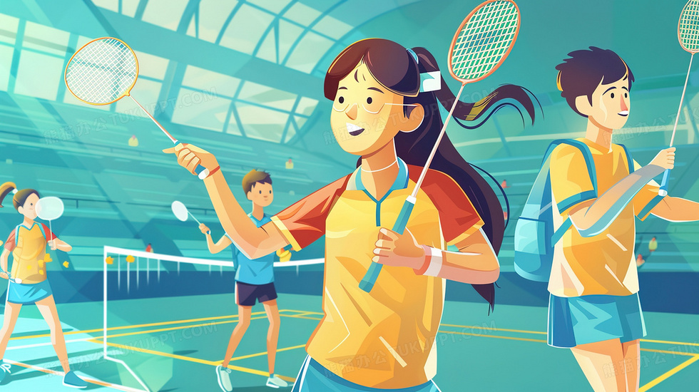 本作品内容为羽毛球运动比赛的年轻人插画, 格式为 jpg, 大小3 MB, 图片尺寸为2912 x 1632, 源文件无水印, 欢迎使用熊猫办公。 如认为平台内容涉嫌侵权,可通过邮件:tousu@tukuppt.com提出书面通知,我们将及时处理。