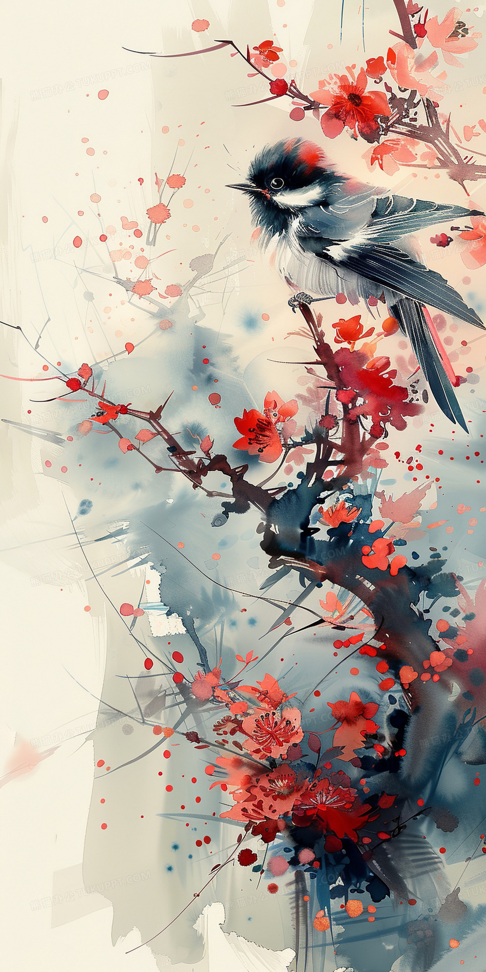 本作品内容为中国风水墨梅花插画, 格式为 jpg, 大小3 MB, 图片尺寸为1536 x 3072, 源文件无水印, 欢迎使用熊猫办公。 如认为平台内容涉嫌侵权,可通过邮件:tousu@tukuppt.com提出书面通知,我们将及时处理。