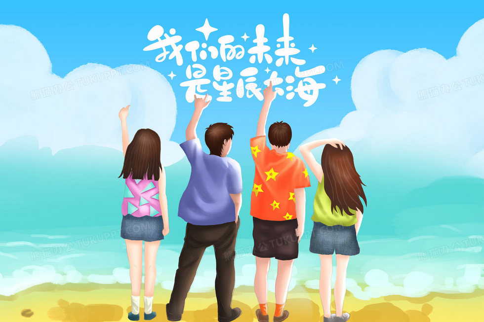 本作品内容为我们的未来是星辰大号毕业季数名学生在海边手绘插画, 格式为 psd, 大小18 MB, 请使用软件PhotoShop(CS6)打开, 源文件无水印, 欢迎使用熊猫办公。 如认为平台内容涉嫌侵权,可通过邮件:tousu@tukuppt.com提出书面通知,我们将及时处理。