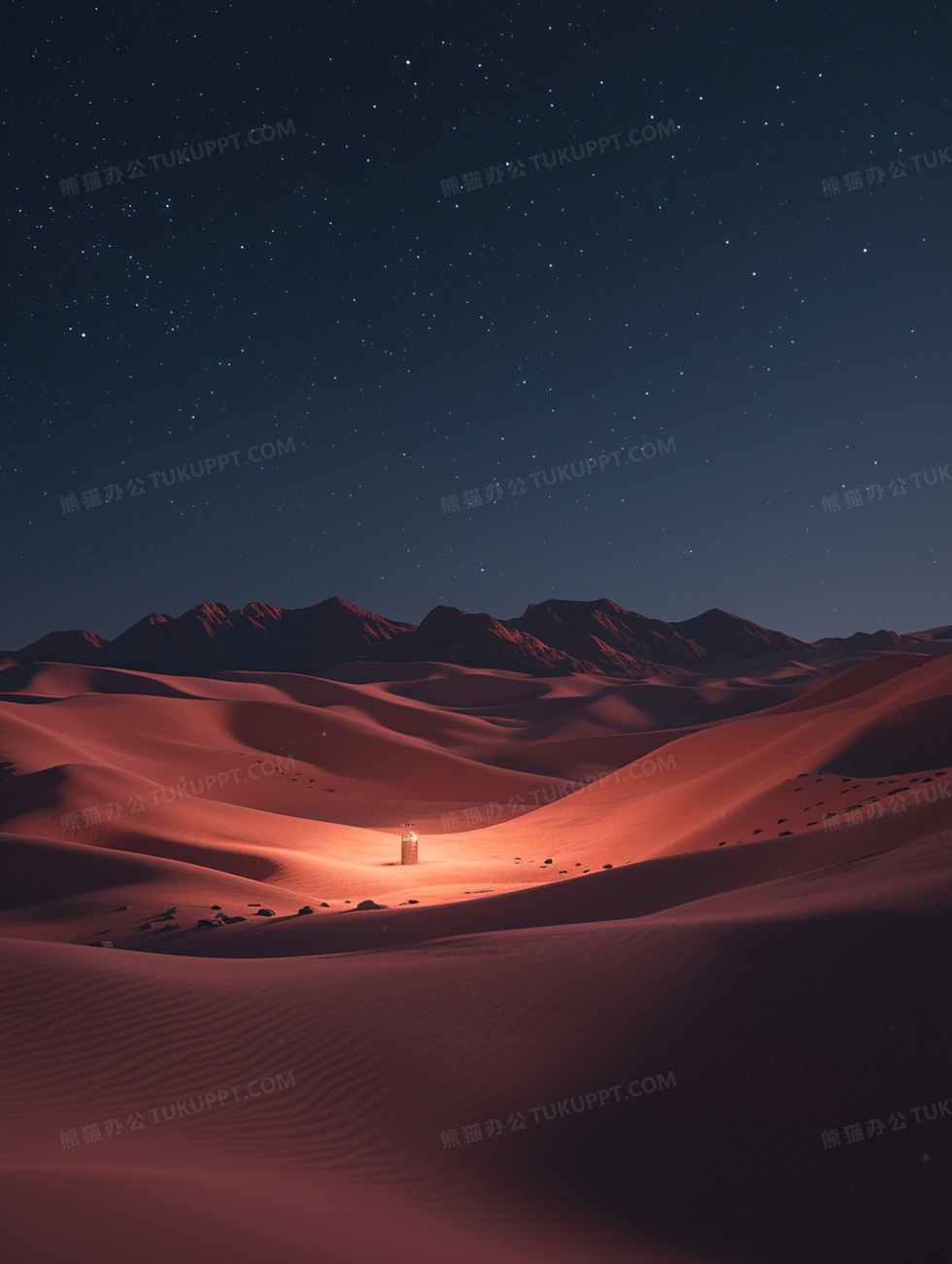 本作品内容为夜晚星空沙漠风光背景, 格式为 jpg, 大小3 MB, 图片尺寸为1856 x 2464, 作品中背景图片无需修改, 源文件无水印,可以直接使用, 欢迎使用熊猫办公。 如认为平台内容涉嫌侵权,可通过邮件:tousu@tukuppt.com提出书面通知,我们将及时处理。