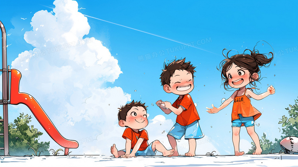 本作品内容为夏天孩子快乐玩耍卡通插画, 格式为 jpg, 大小3 MB, 图片尺寸为2912 x 1632, 源文件无水印, 欢迎使用熊猫办公。 如认为平台内容涉嫌侵权,可通过邮件:tousu@tukuppt.com提出书面通知,我们将及时处理。
