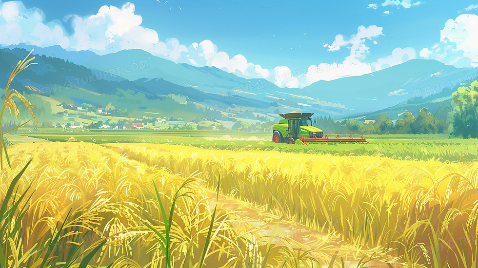 本作品内容为乡村田园收割机收割水稻插画, 格式为 jpg, 大小4 MB, 图片尺寸为2912 x 1632, 源文件无水印, 欢迎使用熊猫办公。 如认为平台内容涉嫌侵权,可通过邮件:tousu@tukuppt.com提出书面通知,我们将及时处理。