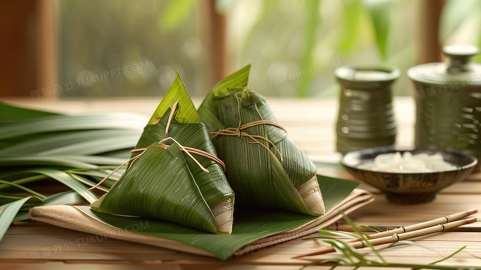 本作品内容为桌面上的端午美食粽子插画, 格式为 jpg, 大小2 MB, 图片尺寸为2912 x 1632, 源文件无水印, 欢迎使用熊猫办公。 如认为平台内容涉嫌侵权,可通过邮件:tousu@tukuppt.com提出书面通知,我们将及时处理。