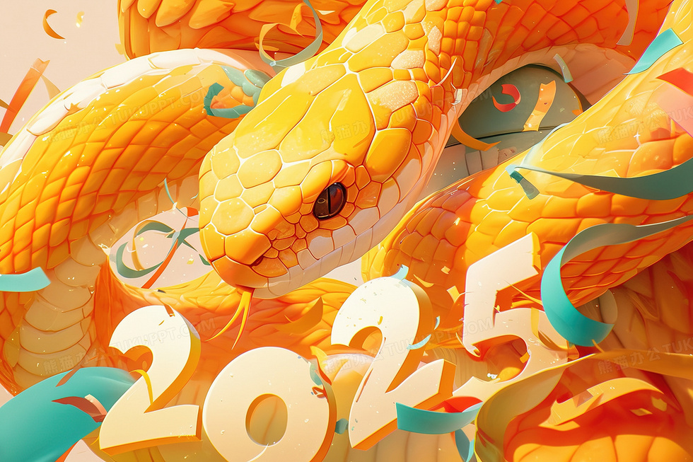 本作品内容为蛇年3d立体创意蛇形象数字2025卡通插画, 格式为 jpg, 大小3 MB, 图片尺寸为2688 x 1792, 源文件无水印, 欢迎使用熊猫办公。 如认为平台内容涉嫌侵权,可通过邮件:tousu@tukuppt.com提出书面通知,我们将及时处理。