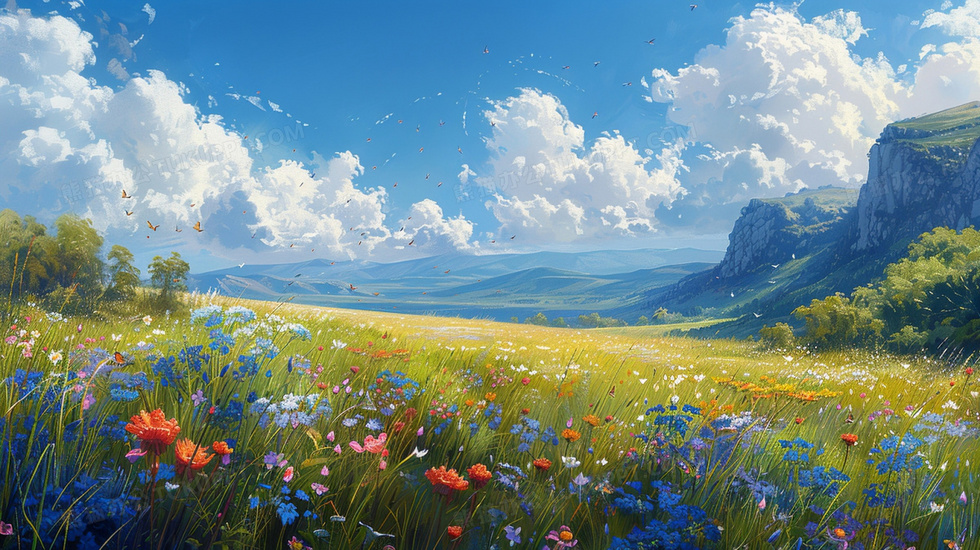 本作品内容为唯美清新自然美景花草丛插画, 格式为 jpg, 大小3 MB, 图片尺寸为2240 x 1256, 源文件无水印, 欢迎使用熊猫办公。 如认为平台内容涉嫌侵权,可通过邮件:tousu@tukuppt.com提出书面通知,我们将及时处理。