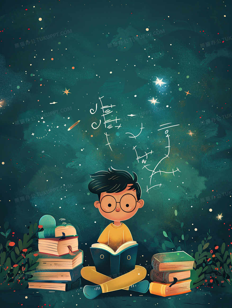 本作品内容为卡通人物学习教育背景, 格式为 jpg, 大小3 MB, 图片尺寸为1856 x 2464, 作品中背景图片无需修改, 源文件无水印,可以直接使用, 欢迎使用熊猫办公。 如认为平台内容涉嫌侵权,可通过邮件:tousu@tukuppt.com提出书面通知,我们将及时处理。