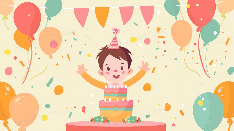 本作品内容为儿童节小男孩庆祝生日蛋糕插画, 格式为 jpg, 大小2 MB, 图片尺寸为2912 x 1632, 源文件无水印, 欢迎使用熊猫办公。 如认为平台内容涉嫌侵权,可通过邮件:tousu@tukuppt.com提出书面通知,我们将及时处理。