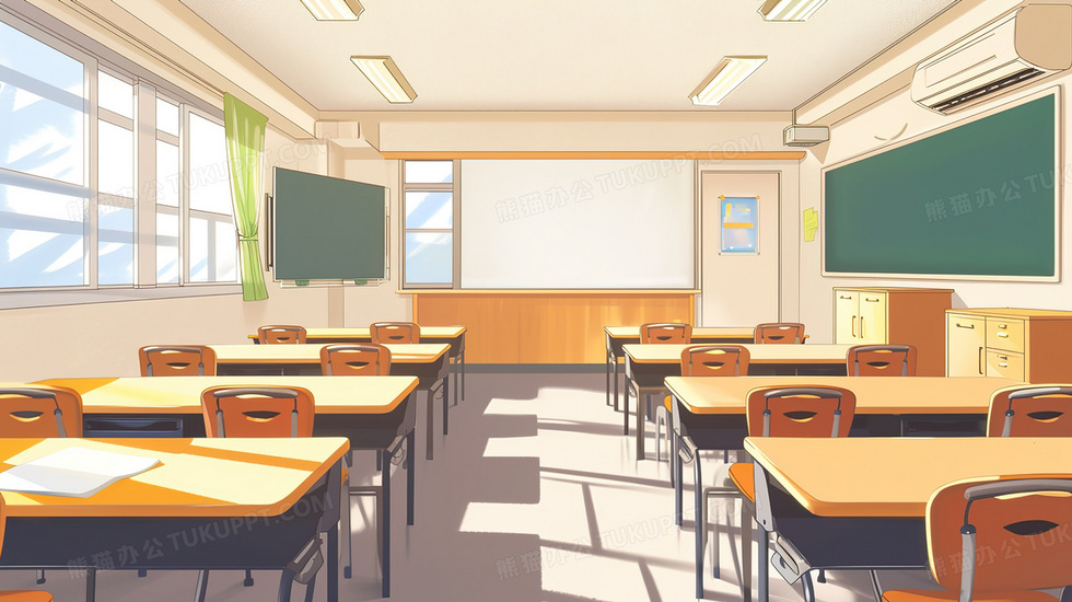本作品内容为卡通风阳光教室课堂书桌插画, 格式为 jpg, 大小2 MB, 图片尺寸为2912 x 1632, 源文件无水印, 欢迎使用熊猫办公。 如认为平台内容涉嫌侵权,可通过邮件:tousu@tukuppt.com提出书面通知,我们将及时处理。