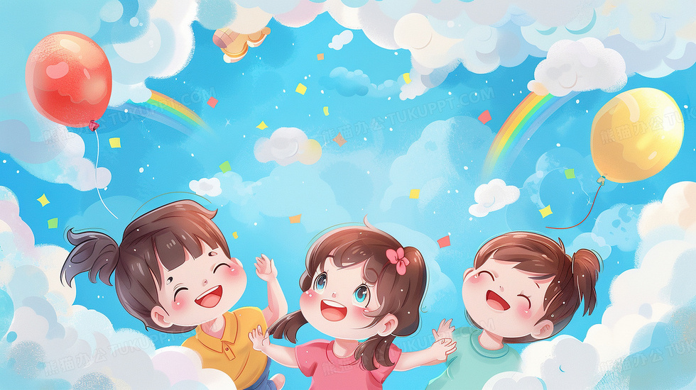 本作品内容为蓝天彩虹气球儿童俯视插画, 格式为 jpg, 大小4 MB, 图片尺寸为2912 x 1632, 源文件无水印, 欢迎使用熊猫办公。 如认为平台内容涉嫌侵权,可通过邮件:tousu@tukuppt.com提出书面通知,我们将及时处理。