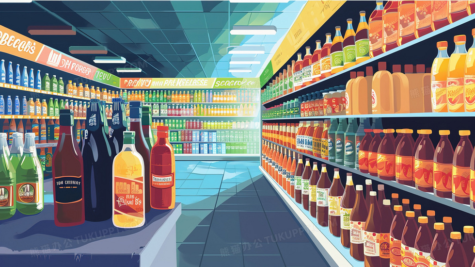 本作品内容为商场里饮品架场景插画, 格式为 jpg, 大小3 MB, 图片尺寸为2912 x 1632, 源文件无水印, 欢迎使用熊猫办公。 如认为平台内容涉嫌侵权,可通过邮件:tousu@tukuppt.com提出书面通知,我们将及时处理。