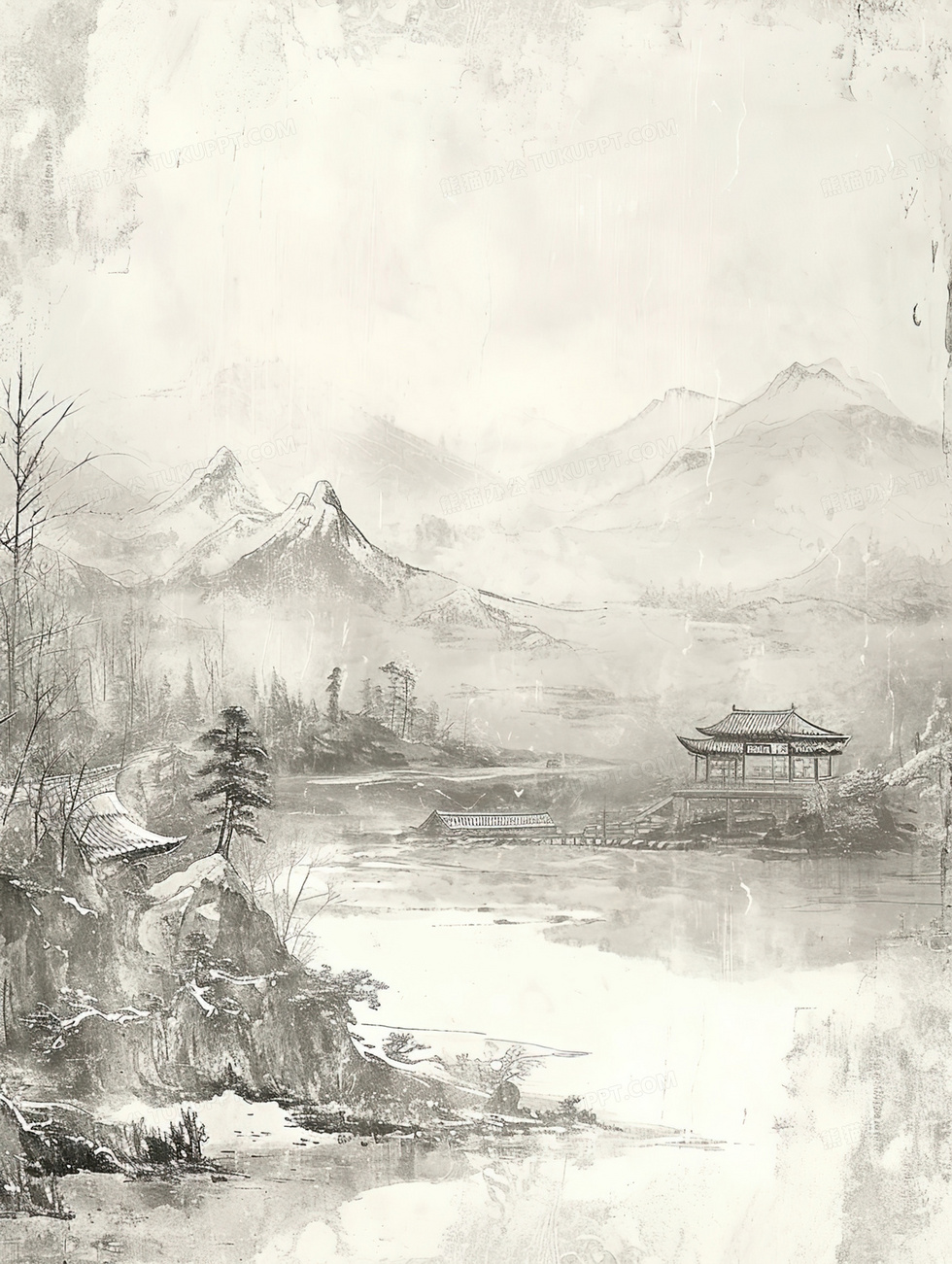 本作品内容为中国传统乡村山水插画, 格式为 jpg, 大小3 MB, 图片尺寸为1856 x 2464, 源文件无水印, 欢迎使用熊猫办公。 如认为平台内容涉嫌侵权,可通过邮件:tousu@tukuppt.com提出书面通知,我们将及时处理。