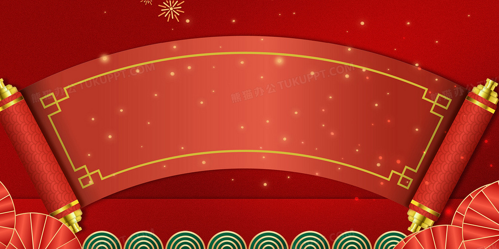 本作品内容为红色新年卷轴背景, 格式为 psd, 大小38 MB, 图片尺寸为4722 x 2361, 作品中背景图片无需修改, 源文件无水印,可以直接使用, 欢迎使用熊猫办公。 如认为平台内容涉嫌侵权,可通过邮件:tousu@tukuppt.com提出书面通知,我们将及时处理。