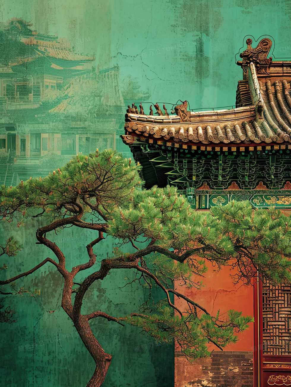 本作品内容为中式古建筑旁的松树插画, 格式为 jpg, 大小5 MB, 图片尺寸为1856 x 2464, 源文件无水印, 欢迎使用熊猫办公。 如认为平台内容涉嫌侵权,可通过邮件:tousu@tukuppt.com提出书面通知,我们将及时处理。