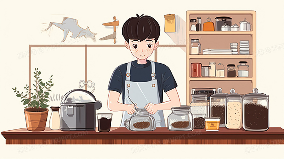 首页 > 插画 > 科技艺术 > 卡通漫画 > 卡通人物咖啡店做咖啡餐饮下午茶插画