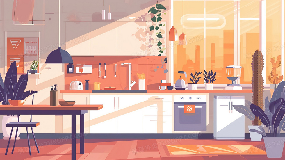本作品内容为家里厨房场景插画, 格式为 jpg, 大小2 MB, 图片尺寸为2912 x 1632, 源文件无水印, 欢迎使用熊猫办公。 如认为平台内容涉嫌侵权,可通过邮件:tousu@tukuppt.com提出书面通知,我们将及时处理。
