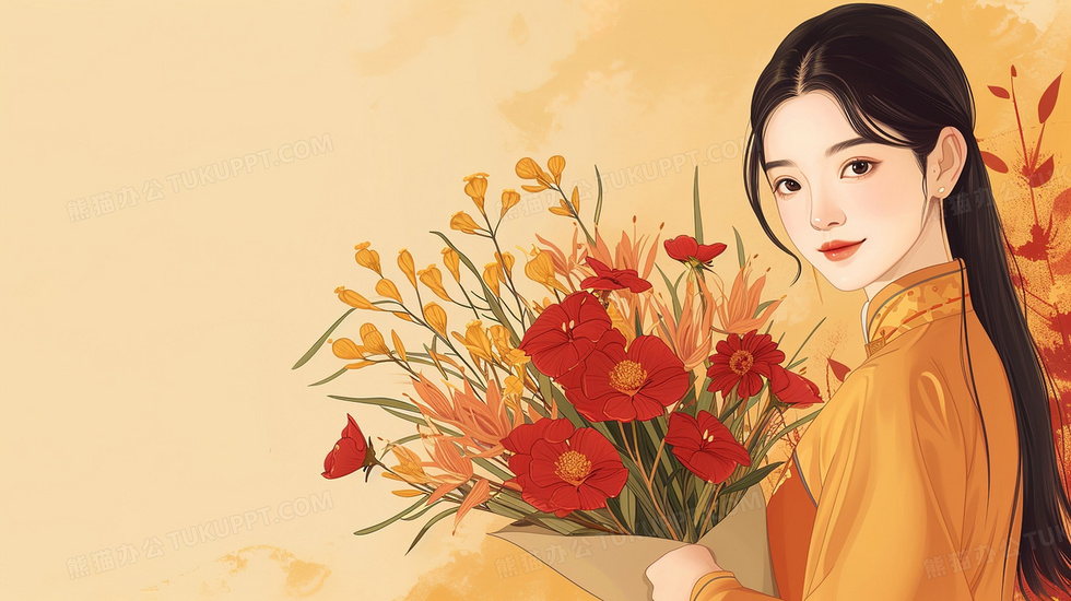 本作品内容为彩色手捧花的古风美女插画, 格式为 jpg, 大小3 MB, 图片尺寸为2912 x 1632, 源文件无水印, 欢迎使用熊猫办公。 如认为平台内容涉嫌侵权,可通过邮件:tousu@tukuppt.com提出书面通知,我们将及时处理。